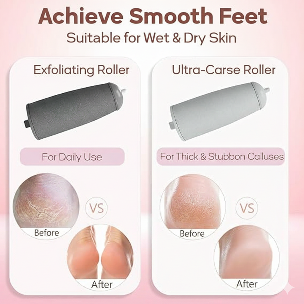 💖 Designed with advanced micro-abrasion technology, it gently buffs away dry skin and calluses without pain or damage. You’ll literally see and feel the difference after just one use!